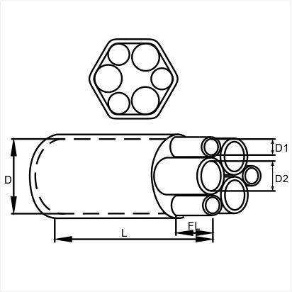 Made of cross linked polyolefin to provide mechanical protection and strain relief. Inner coated with adhesive on the body and the fingers to form a durable watertight seal. To provide sealing protection over 6-core cable crutch, such as trailing cable, variable frequency drive cable, telecommunication cables, control cable, etc. Shrink temperature: start at 90℃,and fully recovered at 130℃.